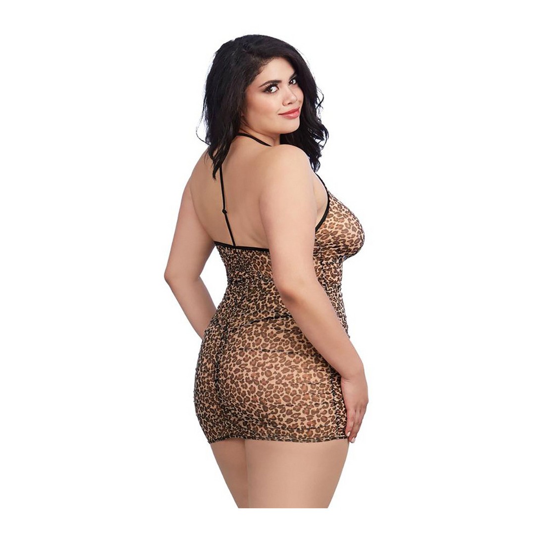 Cette nuisette présente un motif léopard, une fermeture éclair pratique et comprend un string assorti, pour un look saisissant et sensuel.