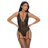 Body en maille à mailles avec collier ras du cou, dos croisé et bretelles pour un look délicat et séduisant.