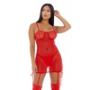 L'ensemble de lingerie deux pièces, nuisette avec string Ring It On, présente une maille transparente, des bonnets structurés avec armatures en W sans doublure, un cordon doré avec anneaux latéraux, des jarretelles et une culotte assortie. Ce produit est livré dans un sac en plastique.