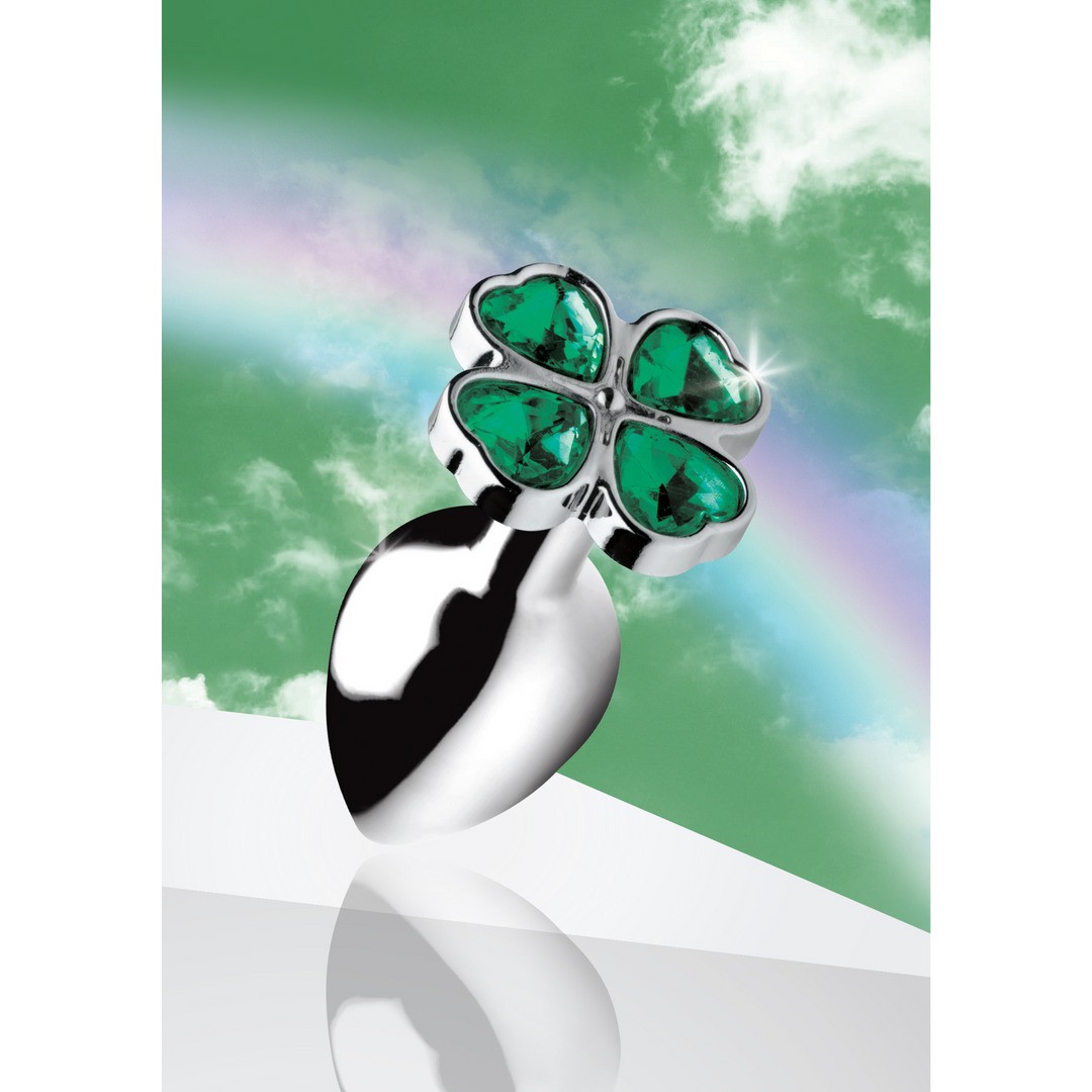 Plug anal en métal avec bijou en forme de trèfle — parfait pour les jeux de température et la stimulation avec charme et chance.