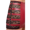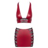 Jupe moulante et haut à encolure dos nu dans un ensemble Cottelli PARTY. Les deux pièces sont confectionnées dans un joli tissu rouge à l'aspect mouillé, avec des empiècements en dentelle noire et des bretelles élégantes ornées d'anneaux argentés sur le haut.