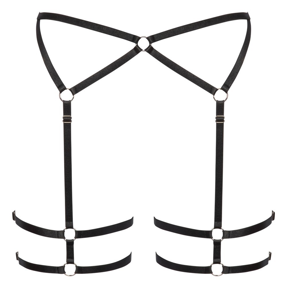 Il est composé de bandes élastiques douces, soyeuses et brillantes, associées à des anneaux de connexion argentés. Les bandes de jarretelles à l'avant et à l'arrière, ainsi que les bandes doubles pour les cuisses, sont réglables pour un ajustement parfait.