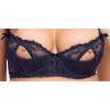 Le soutien-gorge à armatures et demi-bonnet est entièrement recouvert de dentelle et se distingue par ses découpes séduisantes qui mettent en valeur le décolleté. Les bretelles du soutien-gorge et l'agrafe dans le dos sont réglables pour un ajustement parfait.