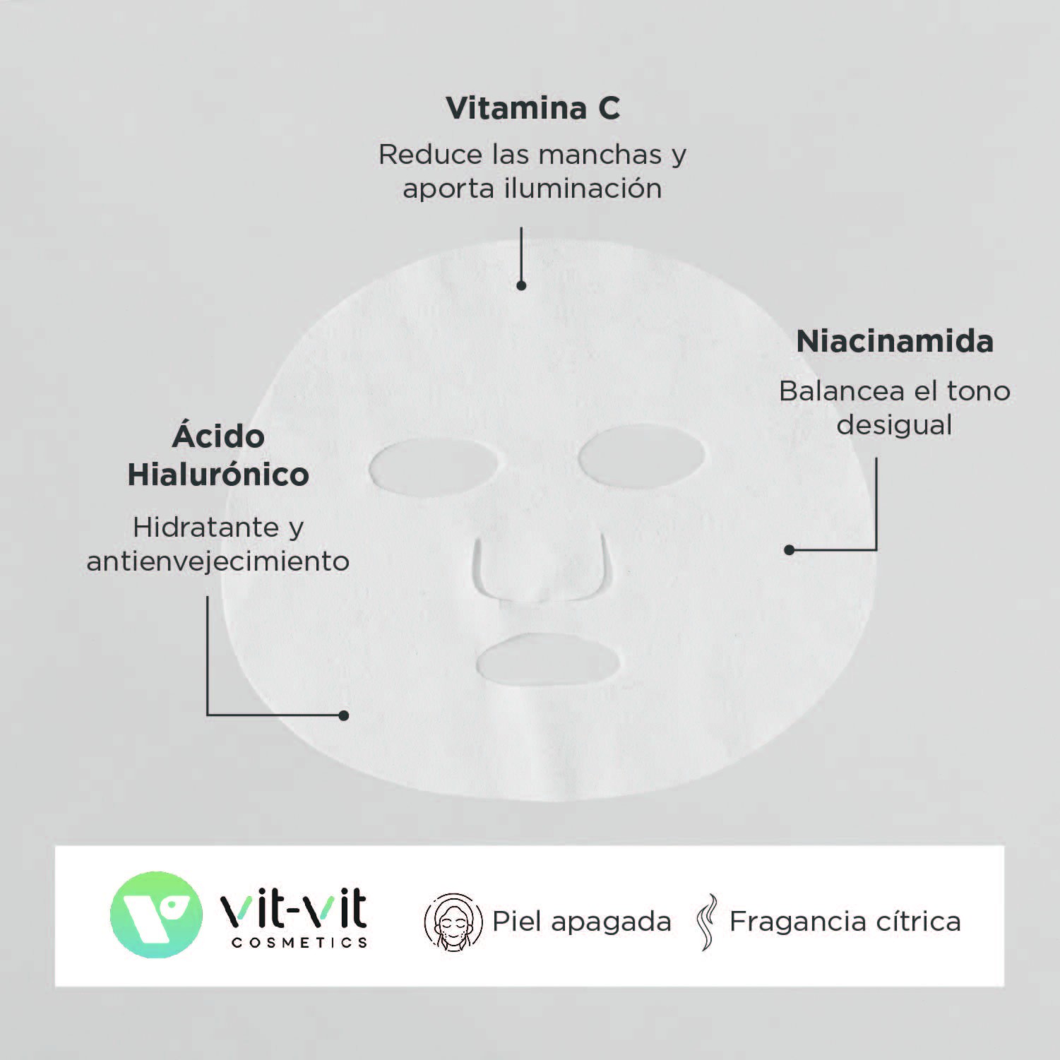 Nous avons intégré ces ingrédients dans le tissu microfibre du masque, qui est doux et s'adapte facilement aux contours de votre visage. Pendant les 15 à 20 minutes de traitement, vous profiterez d'un agréable parfum d'agrumes qui vous accompagnera tout au long de la journée. La couche occlusive créée par le tissu aide à retenir l'humidité et favorise l'absorption des principes actifs.