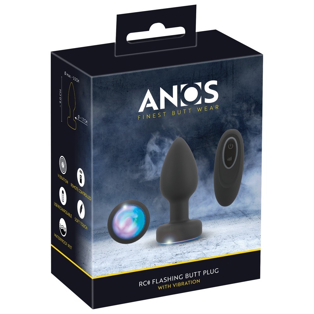 Le RC Flashing Butt Plug with Vibration d'ANOS est doté d'une lumière LED colorée et clignotante à la base. Son design classique et effilé assure une insertion facile et un ajustement parfait, tandis que les vibrations procurent une stimulation intense. La base de sécurité anale facilite la manipulation du plug et l'empêche de glisser trop loin à l'intérieur. Le plug, fabriqué en silicone doux et soyeux, peut ainsi être utilisé confortablement pendant de longues périodes. La lumière clignotante psychédélique s'allume lorsque le plug est inséré.