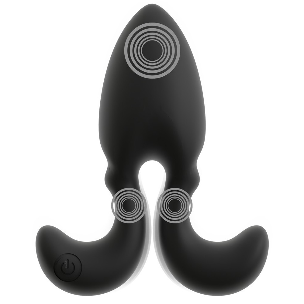 Plug anal en silicone avec vibration et télécommande et bras flexibles pour un plaisir intense et confortable.