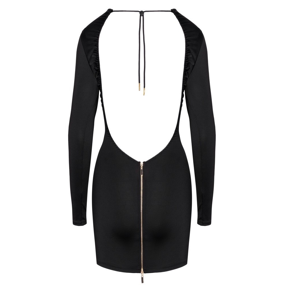 La mini robe noire de Cottelli PARTY est moulante et à manches longues. Elle présente une large découpe à couper le souffle dans le dos et un cordon réglable à l'arrière du cou. Une fermeture éclair à double sens de couleur dorée se trouve à l'arrière de la jupe. La matière délicate et extensible s'adapte parfaitement au corps et est extrêmement agréable à porter.