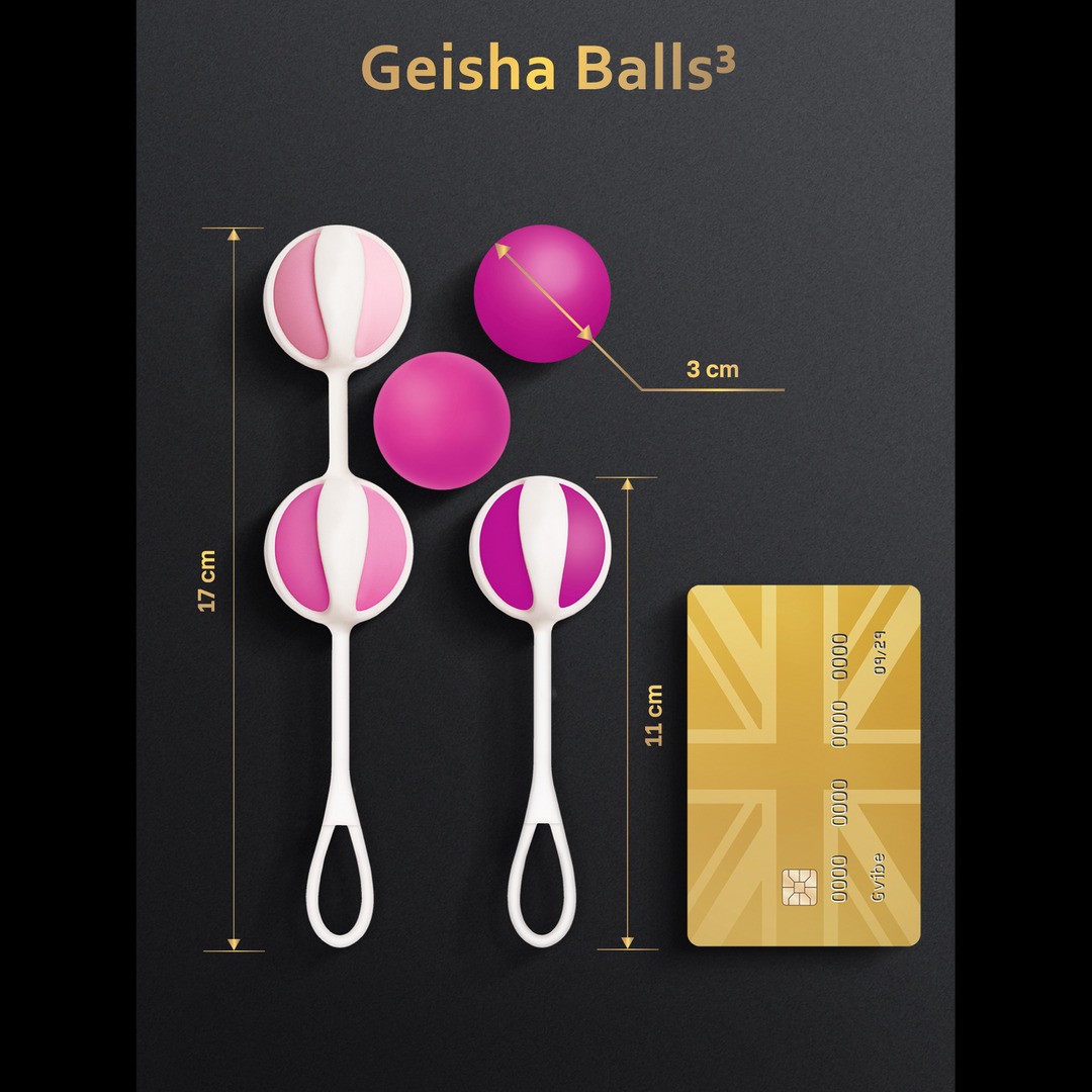 Ensemble Gvibe Geisha Balls 3 pour un entraînement efficace du plancher pelvien, avec différents poids et un design sûr et confortable.