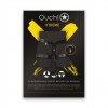 Infographie Pu Leather female chastity belt with leg restraint (OU1029BLK) en anglais.