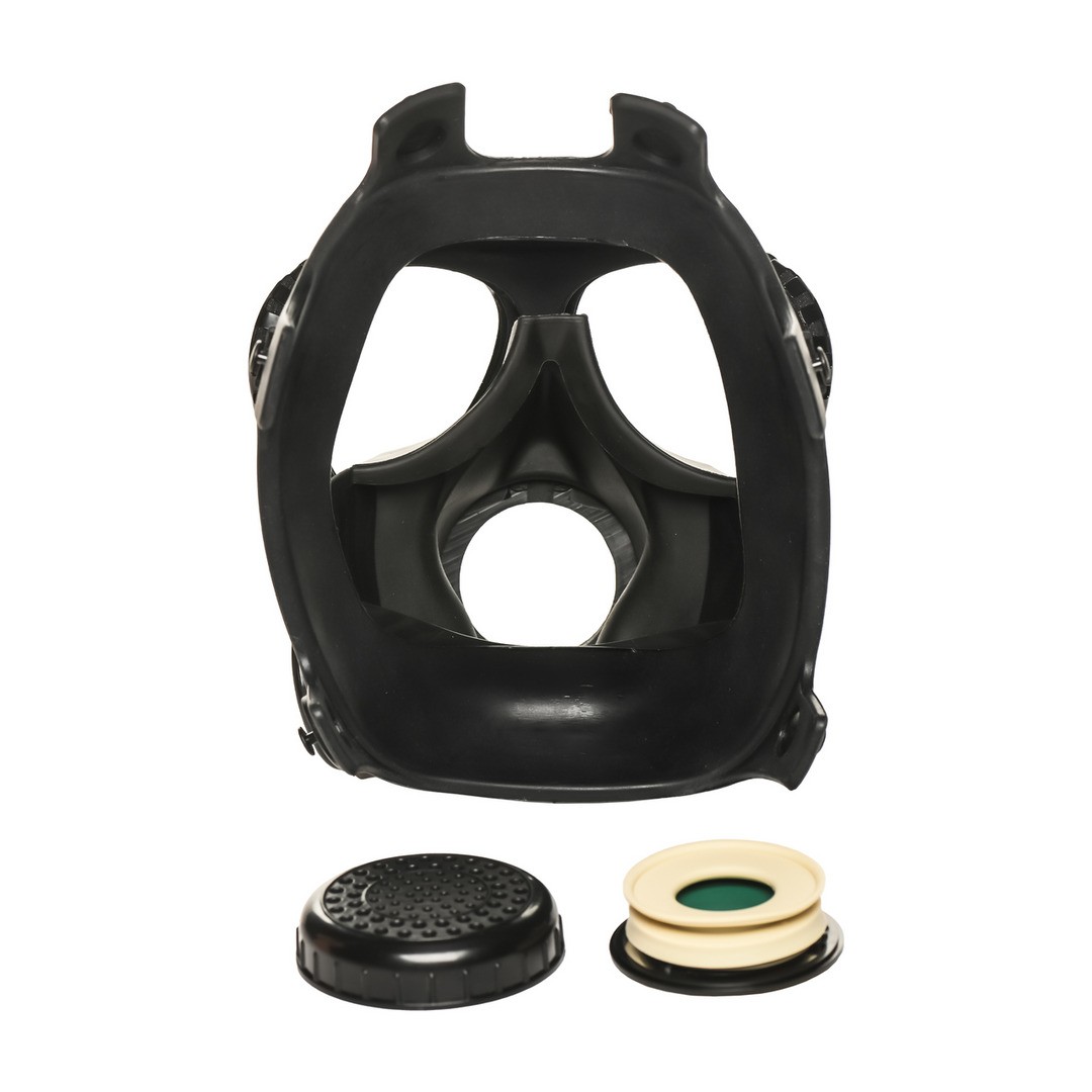 Matériaux: Masque : silicone, métal, plastique. Tuyau: caoutchouc, métal, tissu. Bouteille : plastique.