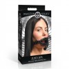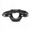 Bâillon bouche ouverte avec grandes lèvres, sangle réglable et conception hypoallergénique en cuir vegan pour des jeux intenses.