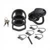 Cage de chasteté masculine au design respirant, avec embout cum-thru, 4 anneaux et système de fermeture sécurisé.