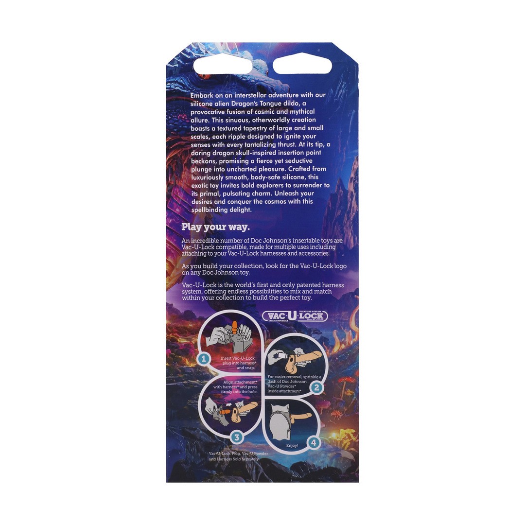 Dragons Tongue: gode alien en silicone premium, texture écailleuse, extrémité d'insertion audacieuse et ventouse compatible avec un harnais.