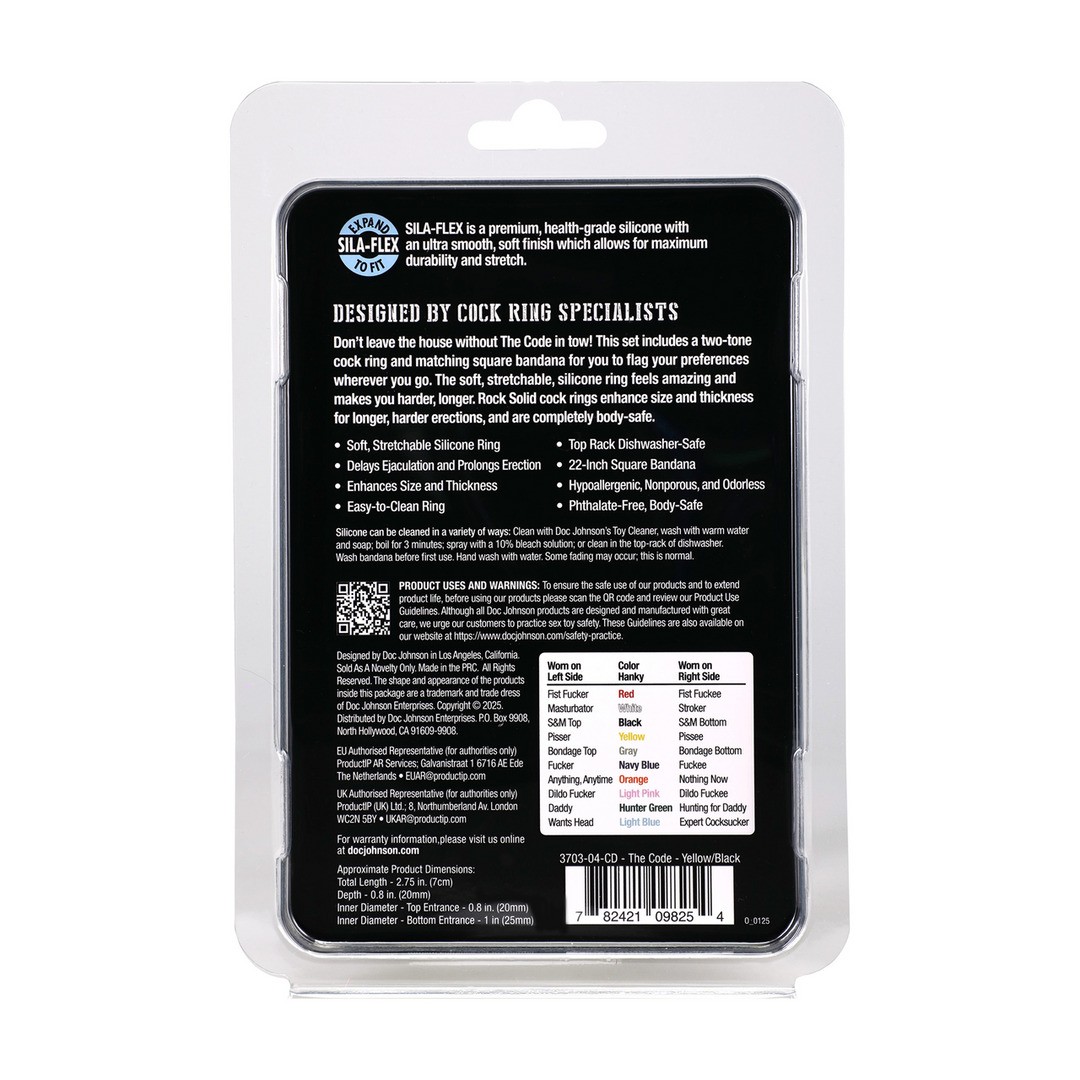 ENSEMBLE DE ANNEUX POUR PÉNIS AVEC ÉCHARPE THE CODE JAUNE DOC JOHNSON