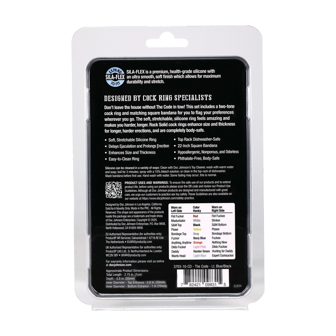 ENSEMBLE DE ANNEUX POUR PÉNIS AVEC ÉCHARPE THE CODE BLEU CLAIR DOC JOHNSON