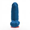 Gode bleu de forme réaliste et aux dimensions généreuses, avec ventouse rouge et texture veillée pour un plaisir intense.