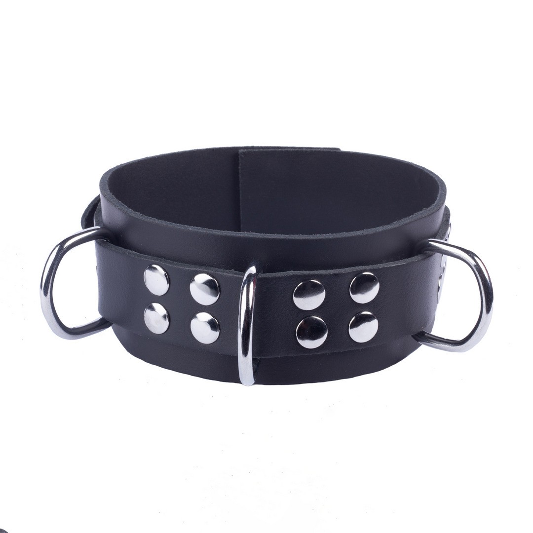Collier en cuir de la gamme Ultra, conçu pour renforcer un style SM marquant et sophistiqué. D'une largeur de 5,5 cm, il entoure le cou de manière ferme et confortable. Réglable pour des circonférences comprises entre 38 et 52 cm, il s'adapte facilement à différents utilisateurs. Les fermoirs, rivets et anneaux métalliques lui confèrent résistance, durabilité et un look robuste.