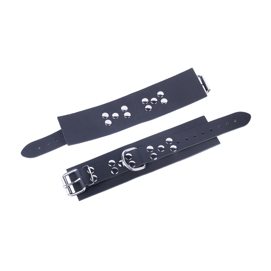 Menottes en cuir de la gamme Ultra conçues pour immobiliser les poignets et les chevilles, idéales pour les jeux SM les plus intenses.