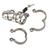 Questa gabbia per il pene facilita il controllo della castità in modo sicuro e saldo. Include tre anelli di diverse dimensioni per adattarsi a varie misure, garantendo comfort e stabilità. Il lucchetto metallico incluso può essere chiuso con le due chiavi fornite.