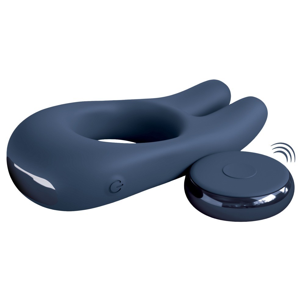 Anello fallico vibrante impermeabile Deimos di JimmyJane con due stimolatori clitoridei. Ogni stimolatore integra un piccolo e potente motore. Le 10 modalità di vibrazione sono comodamente controllate tramite telecomando, garantendo una stimolazione aggiuntiva ed eccitante durante il sesso. La salda aderenza dell'anello aiuta a mantenere l'erezione grazie all'effetto di congestione sanguigna. Il giocattolo, rivestito in morbido silicone, può essere utilizzato anche come vibratore da appoggio per il divertimento da soli o in coppia.