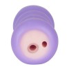 Masturbatore viola con apertura stretta, interno scanalato e aperto su entrambe le estremità. Il mini vibratore incluso, con 5 modalità di vibrazione, può essere inserito nell'apposita apertura e controllato con il semplice tocco di un pulsante.