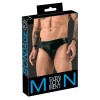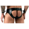 Jockstrap della linea Svenjoyment Bondage, realizzato in un tessuto moderno con finitura opaca che valorizza la silhouette. Presenta un anello su ciascun lato per il fissaggio delle manette incluse, regolabili grazie alla chiusura a gancio e passante, garantendo comfort e versatilità.