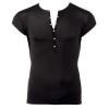 Camicia da uomo leggermente trasparente, realizzata in microfibra sottile, morbida ed elastica, che si adatta al corpo e valorizza la silhouette. Con maniche corte e bottoni a pressione argentati sul davanti, unisce uno stile moderno a un tocco sottilmente audace.