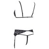 Questo completo a 3 pezzi si distingue per il suo seducente design in pizzo floreale. Il reggiseno, con spalline regolabili, presenta eleganti dettagli a strisce nella zona del décolleté e provocanti ritagli sulle coppe, impreziositi da un anello decorativo.
