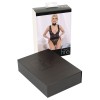 Corpo mozzafiato senza cavallo di Abierta Fina, completamente realizzato in delicato e morbido pizzo. L'ampio inserto nella zona della vita è realizzato in raso resistente ed elastico e sottolinea le curve sexy. Ha una scollatura sul davanti e una scollatura a V sulla schiena. L'ampio colletto e le catene intorno al collo e nella zona della vita sottolineano il look erotico ed elegante del pizzo. Le catene a moschettone sono decorate con strass color oro rosa e possono essere rimosse.
