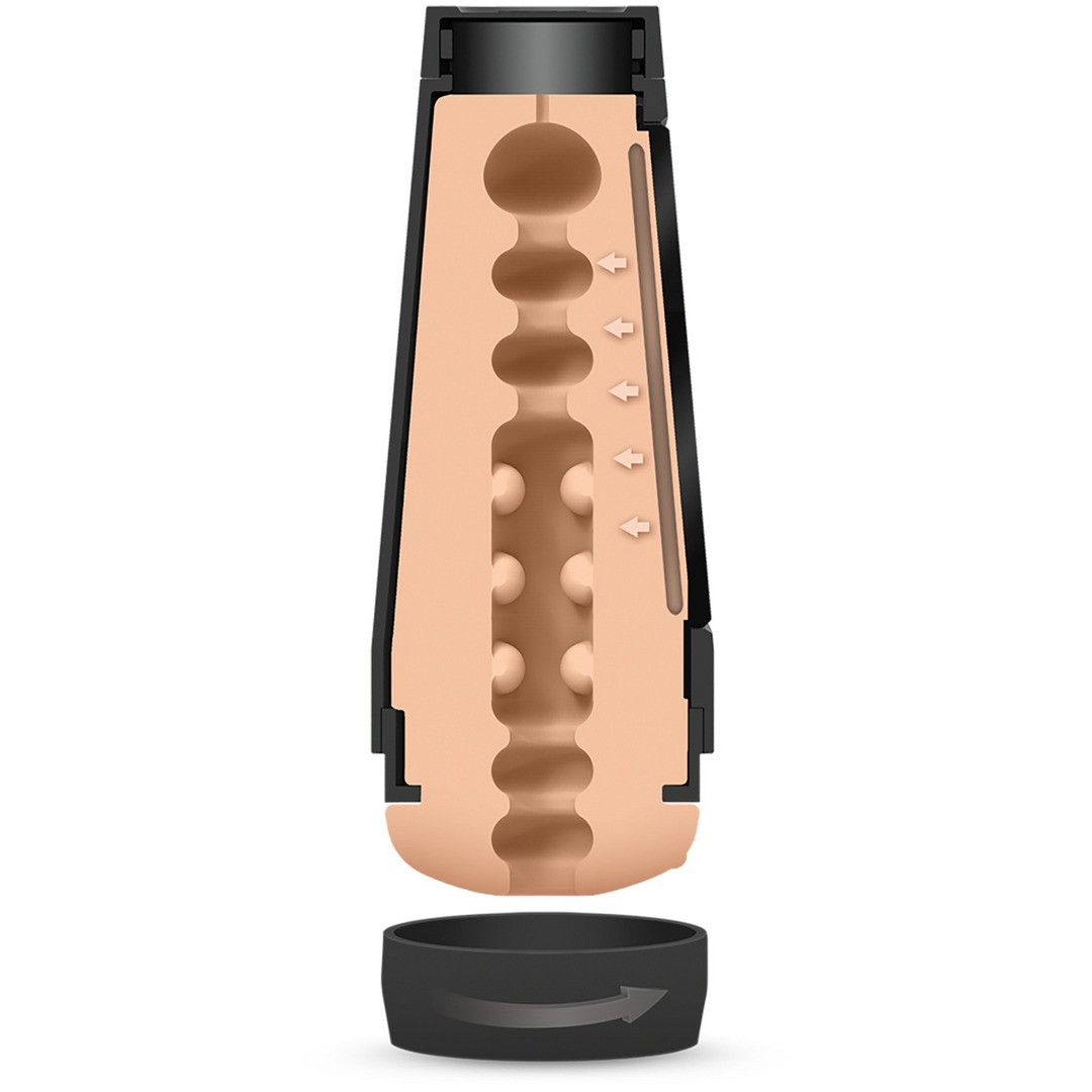 Il realistico ULTRASKYN testurizzato si riscalda al tatto, la piastra di serraggio consente di regolare la pressione e il coperchio girevole regola la forza di suzione.