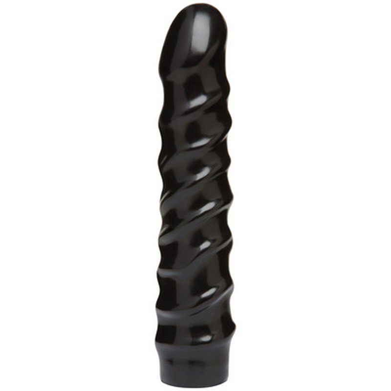 Dildo Vac-U-Lock nero dal design a spirale, con venature per una stimolazione extra, compatibile con i sistemi Vac-U-Lock e sicuro per il corpo