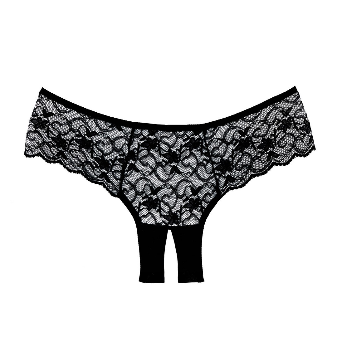 Un turbine di pizzo smerlato ricopre i vostri fianchi e il vostro derriere in questa sontuosa mutandina a tassello aperto dal taglio maschile.