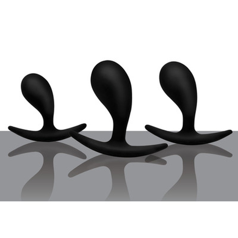 Set di 3 plug anali in silicone vellutato, con dimensioni graduate per un piacere e un allenamento progressivo.