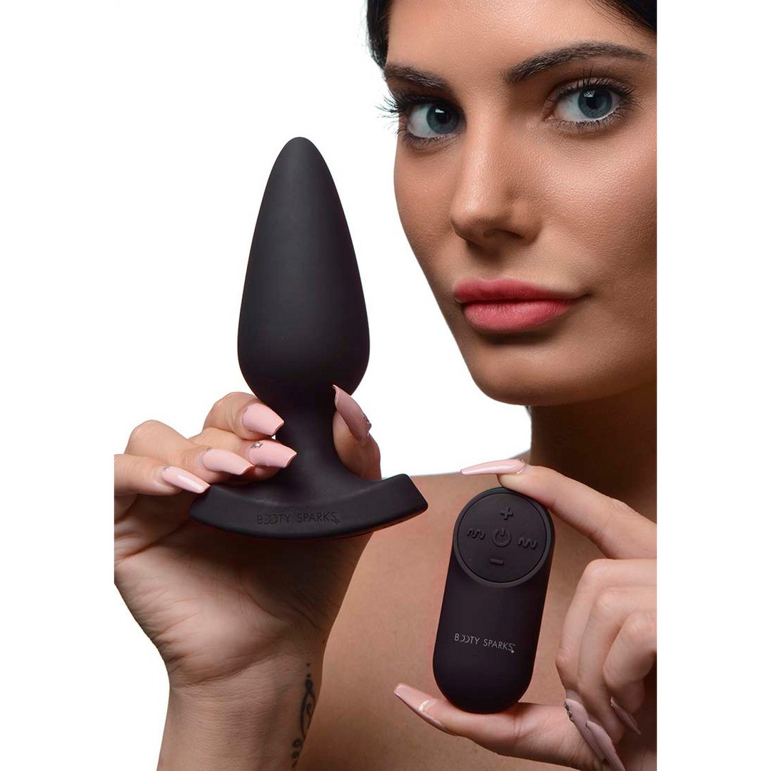 Plug anale in silicone premium con vibrazione, telecomando e base illuminata con cuore rosso pulsante.
