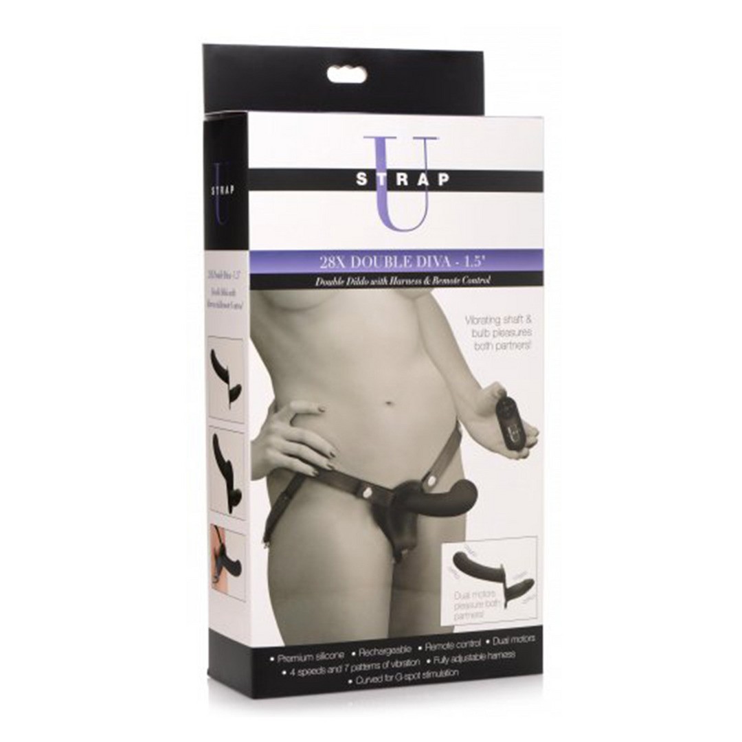 Strap-on con due dildo vibranti in silicone premium, 4 velocità, 7 modalità e telecomando wireless.