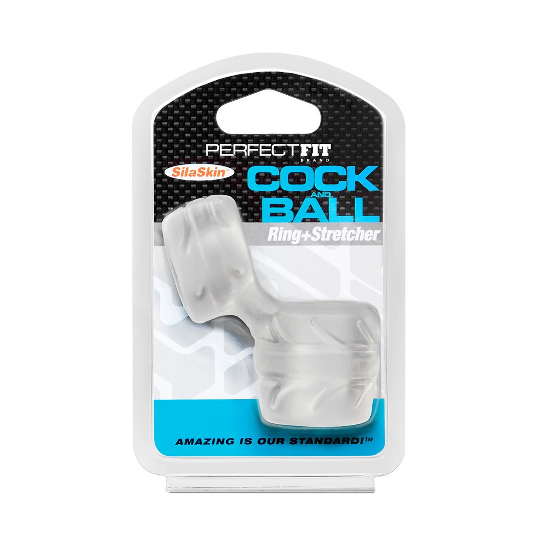Combo Cock Ball di Perfect Fit, anello per il pene ed estensore per testicoli superelastico che offre fermezza, comfort e stimolazione prolungata.