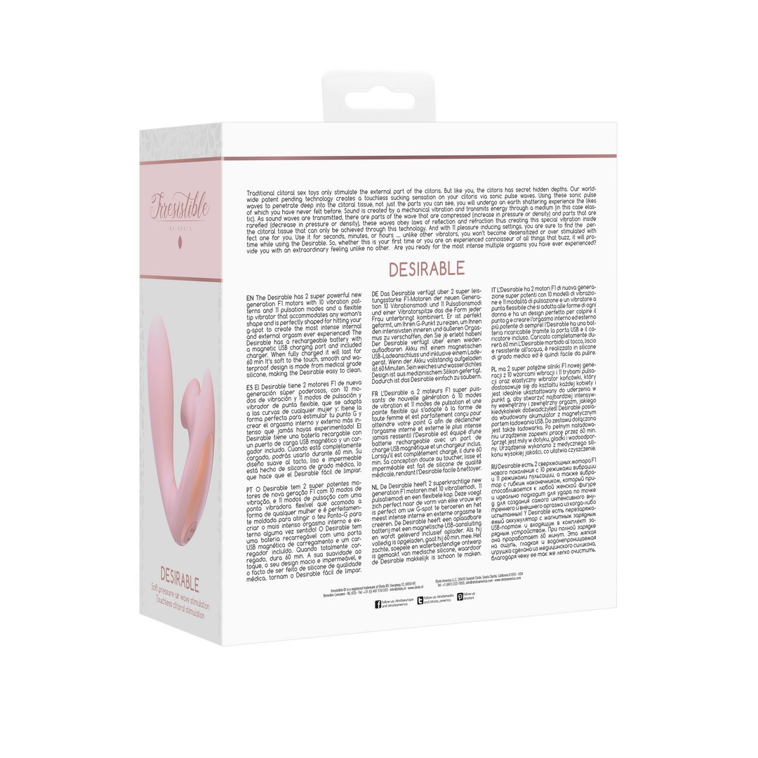 Con 11 intensità regolabili, Desirable si adatta a tutte le preferenze, rendendo ogni utilizzo una piacevole scoperta. Che sia la prima volta o che tu sia già un'esperta del piacere vibrante, preparati a orgasmi multipli profondamente intensi e indimenticabili.