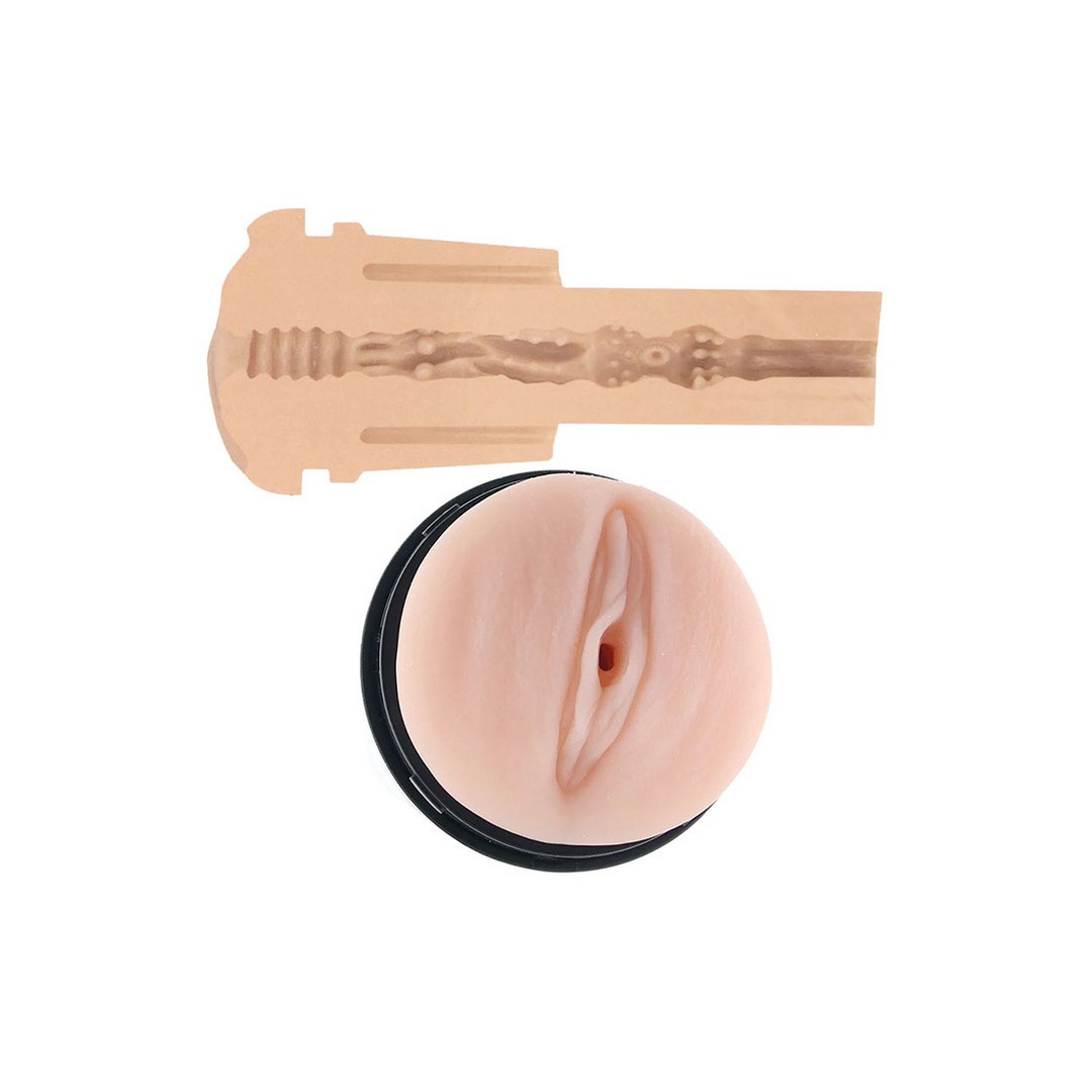 All'interno della custodia conica, la guaina rimovibile in materiale Real Feel, super morbido ed elastico, offre una sensazione autentica al tatto. L'interno presenta una texture personalizzata con protuberanze e camere di piacere uniche, che terminano in una replica realistica dell'anatomia di Jaclyn. Puoi scegliere di mantenere l'estremità posteriore chiusa, per una suzione più intensa, o aperta, per una sensazione più leggera e libera.