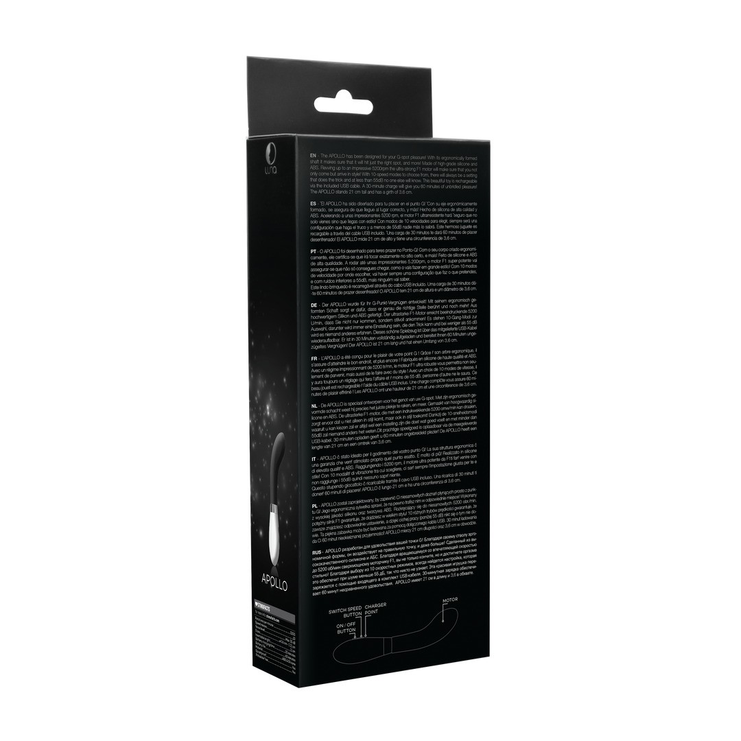 APOLLO è stato appositamente progettato per offrire un piacere intenso attraverso la stimolazione precisa del punto G. Il suo asse ergonomico si adatta perfettamente all'anatomia femminile, garantendo una portata precisa e sensazioni profonde ad ogni movimento.