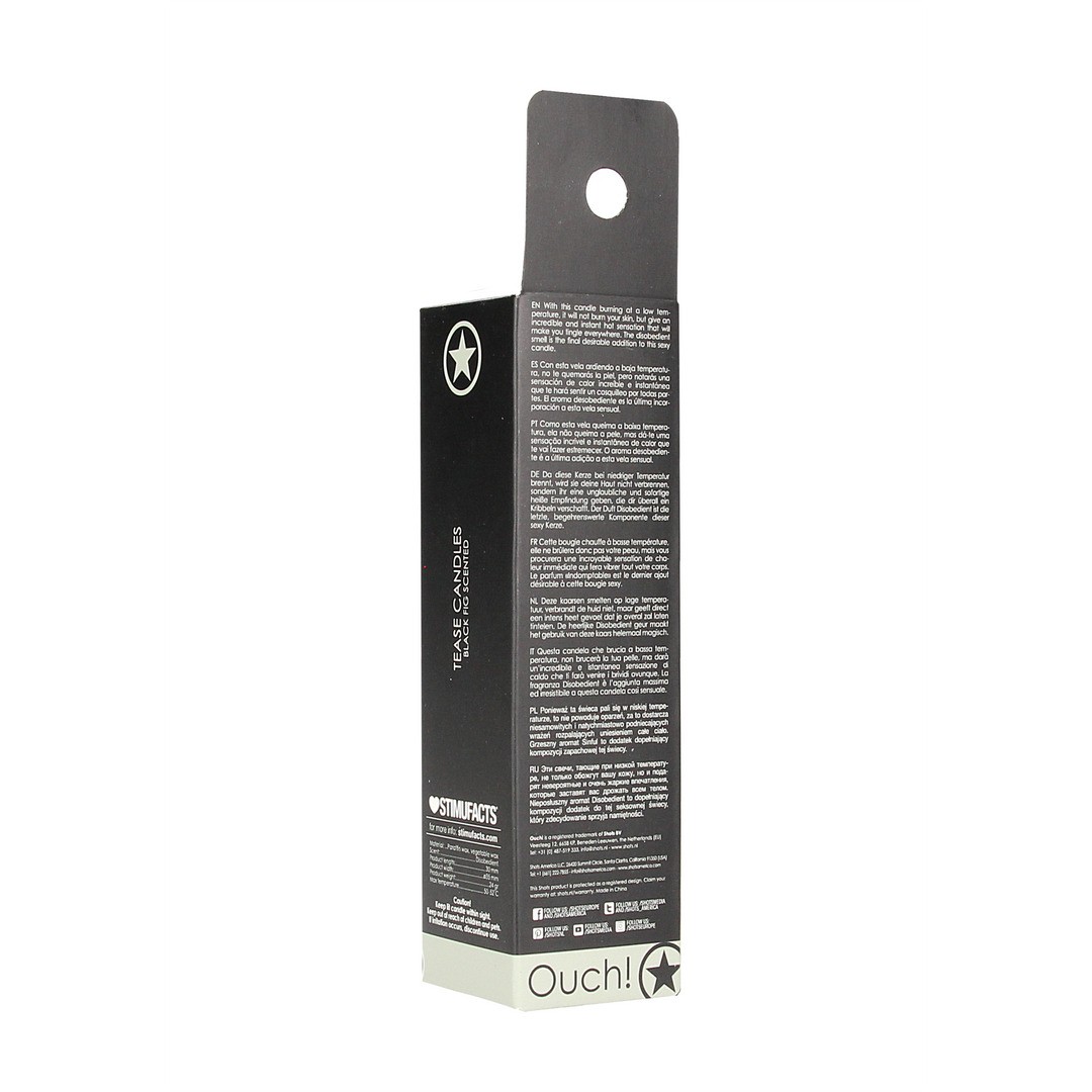Bassa temperatura di combustione per non bruciare la pelle. Vi farà tintinnare dappertutto. L'odore gradevole riempirà tutta la stanza di un'atmosfera birichina. Provate sensazioni incredibili con questo giocattolo di Ouch! Perfetto per un grande piacere!
