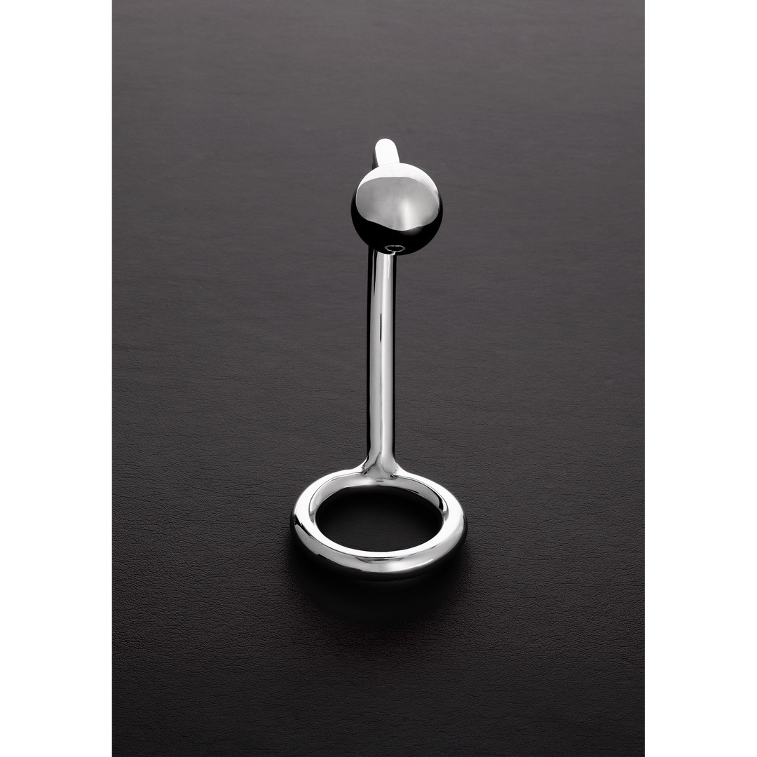Anello per il pene in acciaio inossidabile con pallina anale rimovibile per un maggiore comfort e piacere.