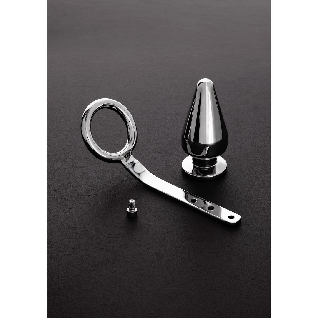 Combinazione regolabile in acciaio inossidabile di plug anale e anello per il pene per un piacere prolungato e sicuro.