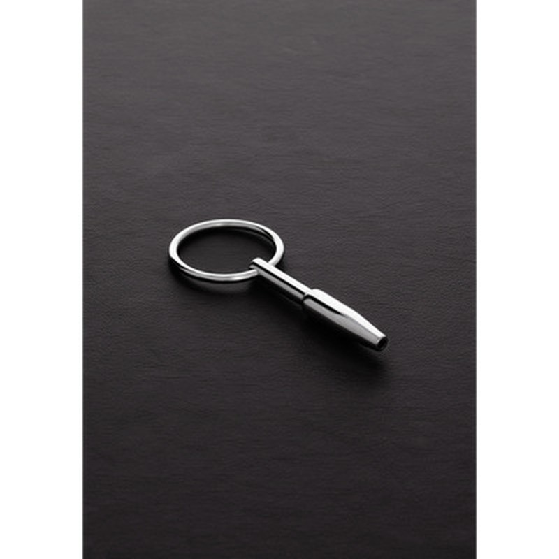 Plug per uretra cavo in acciaio inossidabile da 4,5 cm, con punta conica e anello per un fissaggio sicuro e un piacere controllato.