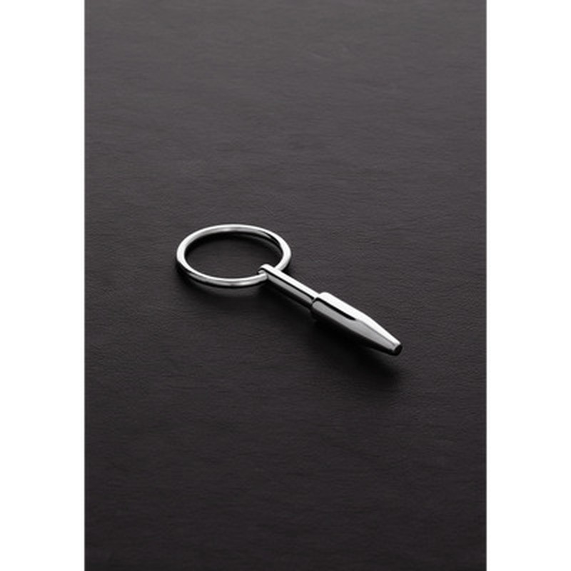 Plug per uretra cavo in acciaio inossidabile con punta conica e anello di fissaggio per un piacere sicuro e stimolante.
