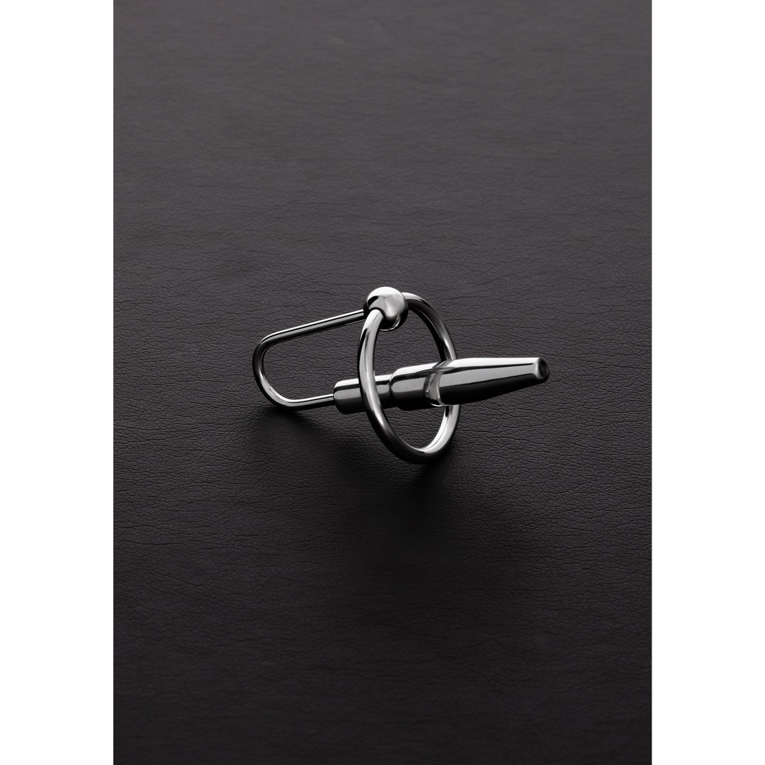 Plug per uretra ergonomico in acciaio inossidabile con anello mobile, progettato per esercitare una sensuale pressione sul glande. La sfera che sostiene l'anello stimola efficacemente la zona del frenulo e il punto G del partner durante la penetrazione. Ha una lunghezza inseribile di 6 cm, il diametro interno dell'anello è di 2,5 cm e il diametro del pene è di 0,8 cm. Facile da pulire, questo giocattolo della gamma Shots Steel offre comfort e piacere elevato.