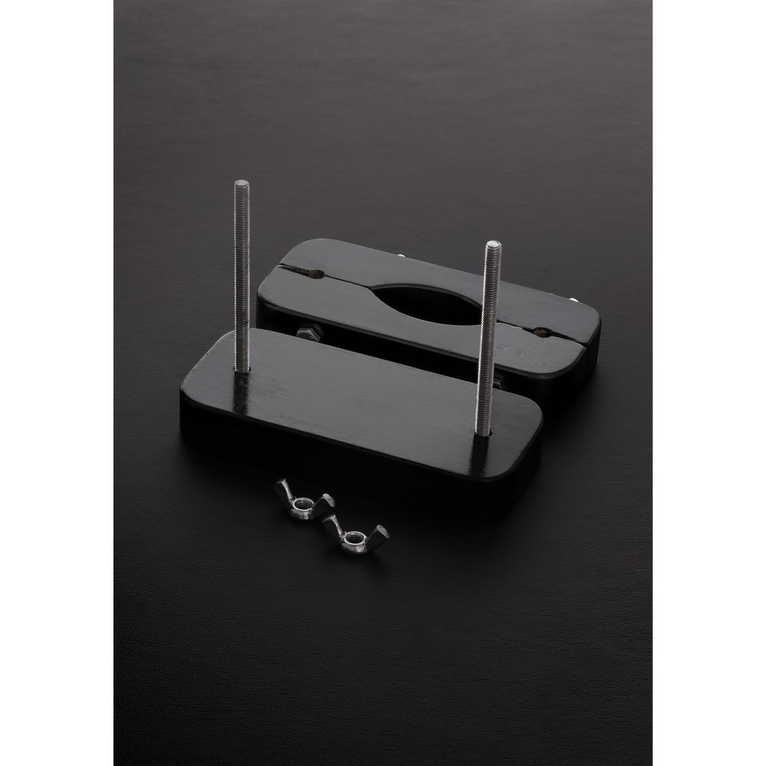 Realizzato in legno con finitura laccata nera, questo Testicle Vice brevettato è completamente regolabile, sia nella posizione che nella pressione applicata. Con una lunghezza di 10,4 cm e una larghezza regolabile fino a 8,3 cm, si adatta a diversi livelli di intensità. Resistente, pratico e facile da pulire, è stato sviluppato per offrire esperienze intense e controllate.