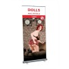 Roll-up promozionale pratico e di grande impatto, ideale per mettere in risalto la bambola durante eventi o nei punti vendita.