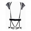 Per un look da fashionista e seduttrice. Sicuramente non per Zoom, questo è solo di persona. Il top bolero in rete con bretelle regolabili davanti e dietro si fonde con una mutandina completamente aperta con spalline regolabili. Per addolcire ulteriormente il look, i reggicalze evidenziano i fianchi con fasce regolabili allegate.