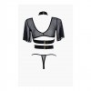 Design disinvolto di piacevolezza stuzzicante, offre una copertura minima con il massimo risultato. Il top in rete trasparente è fuso con spesse cinghie che lo rendono un capo straordinariamente sexy e al tempo stesso stravagante. Apertura posteriore regolabile con gancio. Viene fornito con un perizoma in rete trasparente.