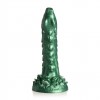 Dildo Monster a forma di drago verde, realizzato in silicone premium, con ventosa e curva ideale per stimolare il punto G o P.